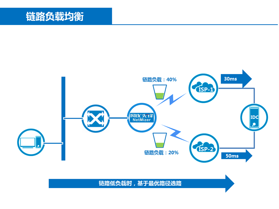 最佳鏈路(lù)動态選擇算(suàn)法:在盡可(kě)能(néng)保證所有(yǒu)用(yòng)戶上(shàng)網質量的(de)同時(shí),充₹分(fēn)利用(yòng)各出口的(de)帶寬資源。