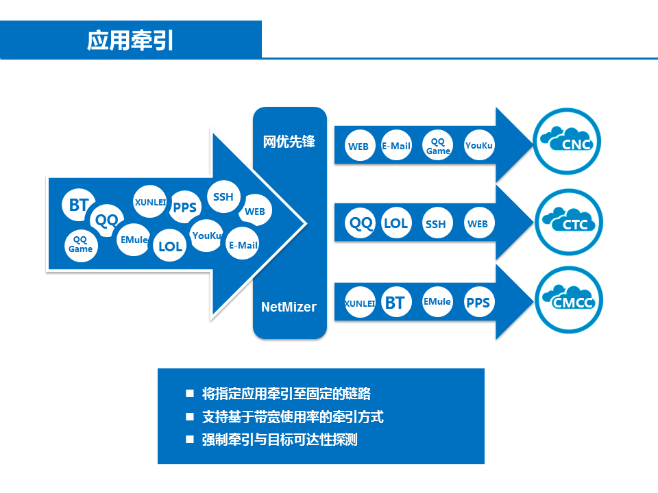 | 應用(yòng)牽引 | 将指定七層應用(yòng)牽引至固定鏈路(lù); |