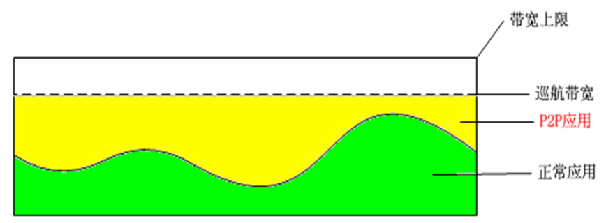當帶寬資源富餘時(shí)不(bù)對(duì)受限應用(yòng)限速,在帶寬資源緊張時(shí)對(duì)受限應用(yòng)限速,鏈路(lù)出口¶的(de)總帶寬在高(gāo)峰期流量如(rú)恒定不(bù)變的(de)帶寬一(yī)般,稱之為(wèi)帶寬定速巡航。其原理(lǐ)圖'如(rú)下(xià)圖所示: